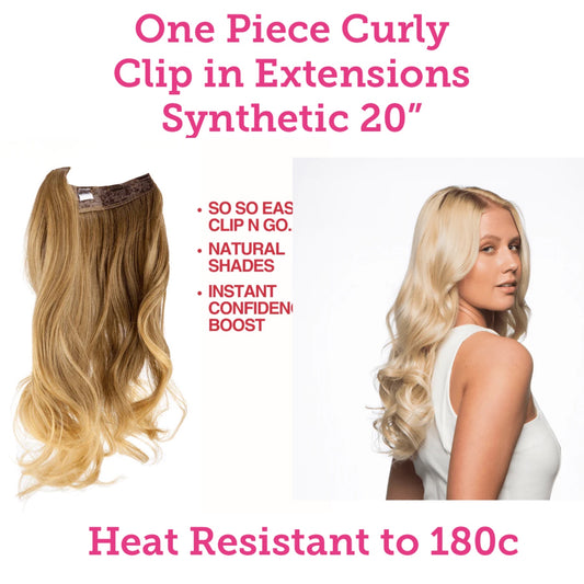 Clip in Curly One Piece Hair Extensions Synthetic 20”