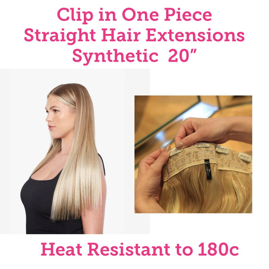 Clip in Straight One Piece Hair Extensions Synthetic 20”
