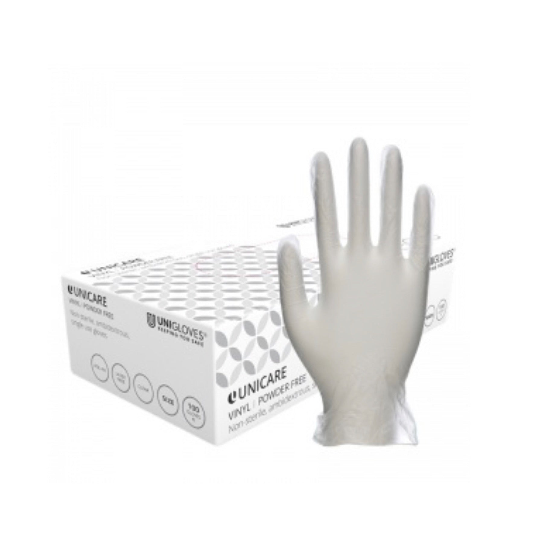 Unigloves Unicare glove range has been developed to provide exceptional levels of comfort. Made with a unique low-friction inner polymer coating for smooth donning and are tapered at the wrist to better fit your hand. Unicare disposable vinyl gloves also feature beaded cuffs for extra strength and tear resistance.